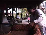Cutting Grass with a MacheteSister Lela sent her son up the hill to get clay in the wheel barrow. She made a clay oven which they used frequently to save buying expensive butane. The clay burning chamber is on top of an old stove. A metal top on the burning chamber supports cooking pots. The old metal oven gets hot, allowing baking too.